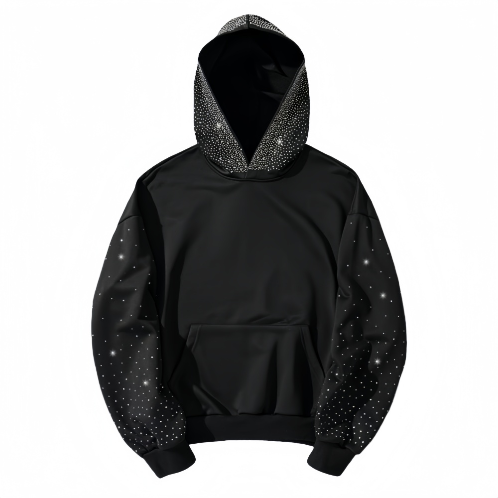 First, always start with a pre-wash inspection. Lay the hoodie flat and check for loose rhinestones, frayed threads around embellishments, or any stains. If you find loose stones, secure them temporarily with a small amount of fabric glue (choose a clear, flexible formula) and let it dry completely before washing—this prevents them from falling off during the cycle. For stains (e.g., food, sweat), spot-treat them gently with a mild detergent. Dab the stain with a damp cloth (avoid rubbing, as this can dislodge stones) and let the detergent sit for 5–10 minutes. Never use harsh stain removers, bleach, or ammonia, as these can weaken the glue holding the rhinestones and damage the fabric.
