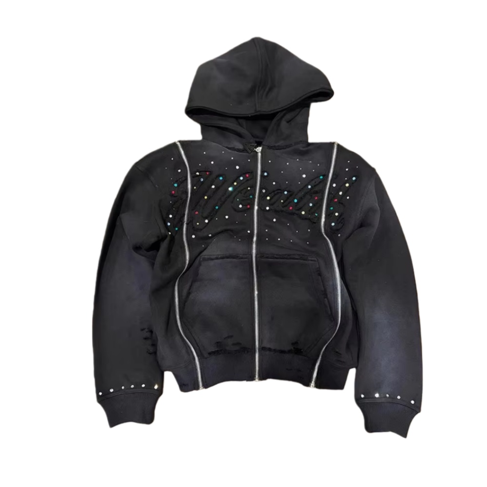 rhinestone hoodie are highly fashionable items that can add brilliance and individuality to any outfit. However, their delicate crystal decorations require special care to avoid damage during washing – such as crystals falling off, fading, or fabric distortion. Whether your hoodie has crystals adhered by glue or sewn on, following the correct washing method can ensure that it remains bright and intact for many years. Here is a detailed guide on how to properly clean crystal button hoodies.
